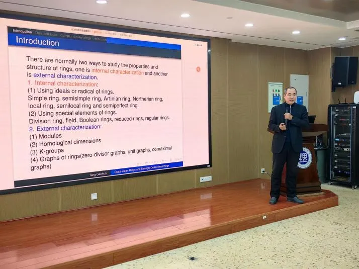 1月3日上午,北部湾大学唐高华教授应邀在17102报告厅为数学学院师生做了题为“Quasi-clean Rings and Strongly Quasi-clean Rings”的“数学大讲堂”专家讲座,数学学院副院长周小强(主持工作),副院长李松华、罗德仁,以及部分教师、全体研究生与会。