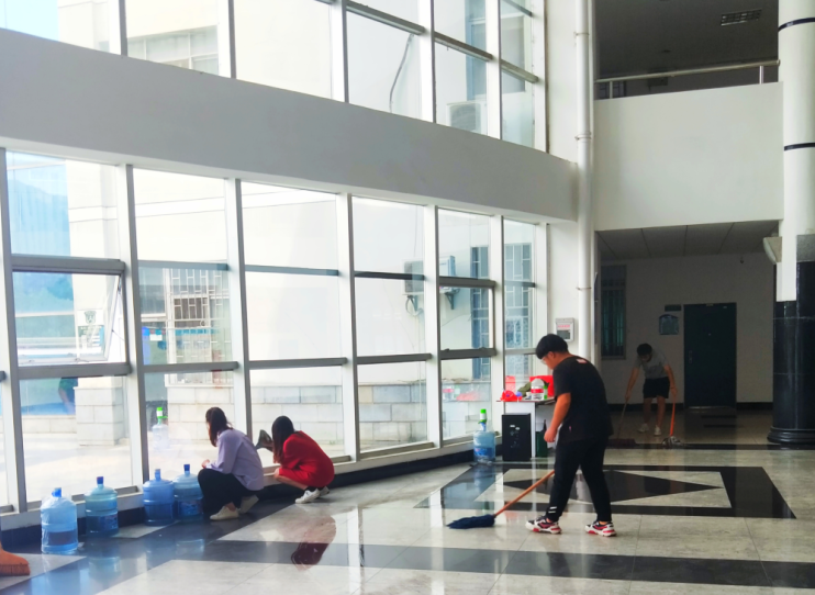 本站讯9月26日中午12:00于五号教学楼,数学学院学生党支部开展“携手共建美丽校园、喜迎新中国成立70周年”主题党日活动。此次主题党日活动以打扫五号教学楼为主要内容。数学学院学生党支部全体党员及入党积极分子参加。