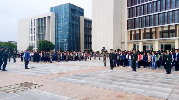 校园网讯 4月17日上午,数学学院在图书馆前举行了庄严隆重的升旗仪式。数学学院院长孙明保,党总支书记阳鲁平,副院长周立仁、丁卫平,党总支副书记易政群,学工部办公室主任左峻,心理健康中心主任毛伟,学工办主任、16级辅导员蔡奕,团总支书记、15级辅导员傅丹,13、14级辅导员何铁勇出席了本次升旗仪式,我院15、16级全体同学参加了升旗仪式。