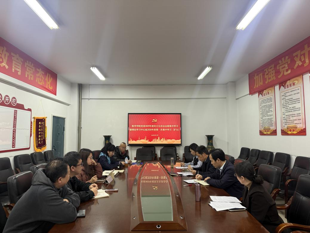 3月17日下午,数学学院党委在5306会议室召开2025年度民主生活会会前集中学习暨理论学习中心组2026年度第一次集中学习(扩大)。会议由院党委书记江五元主持,学院全体领导班子成员、各党支部书记参加。