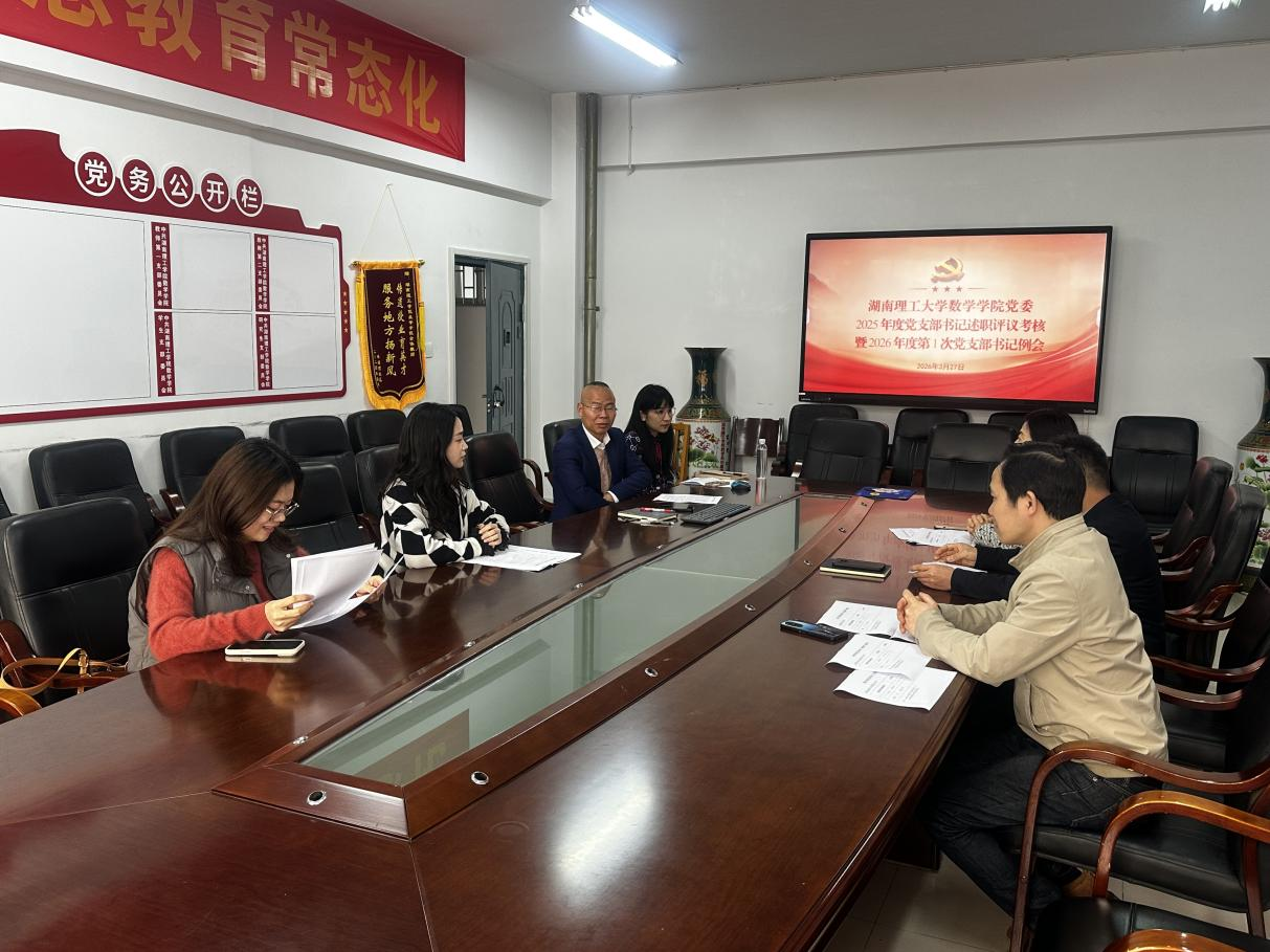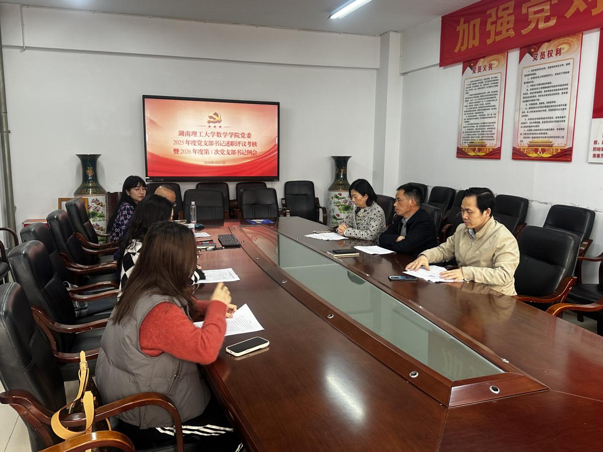 3月27日下午,数学学院党委在5306会议室召开2025年度党支部书记述职评议暨2026年度首次党支部书记例会。学院党委书记江五元主持会议,全体党委班子成员及各党支部书记参会。